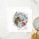 Capturar a magia da estação com esta ilustração emocionante de uma menina acariciando carinhosamente o nariz de um cavalo, enquanto uma charmosa galinha pica sobre a cabeça do cavalo, olhando carinhosamente para baixo. A cena é enquadrada por uma coroa festiva de férias enfeitada com flora sazonal, definindo perfeitamente o tom da mensagem alegre: "Esta é a Estação da Alegria e Maravilha. Jenn Steffen Art.
