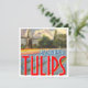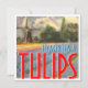 Hyacinths e Tulips Windmill impressão/ card. Campos coloridos de flores de primavera e moinhos de vento com textos personalizáveis "Hyacinths &" e "Tulips" impressionista pintando cartão de trabalho de arte quadrado impresso.