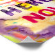 Você frequentemente se perde no passado e no futuro? Precisa de um lembrete para estar aqui, neste momento? Este poster pode fazer exatamente isso... pegando seu olho com suas cores vibrantes, ele pode lembrá-lo toda vez que você passar para respirar e se trazer de volta para este momento, aqui no presente. Porque aqui e agora é onde está toda a ação e poder real!