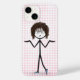 Garota fixe com óculos, cabelo cinza e tênis azuis em um padrão de gingham rosa e branco. O plano de fundo pode ser alterado.
