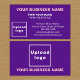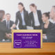 Cartão de visita que você pode personalizar para seus clientes ou clientes para encontrar facilmente seu endereço comercial e informações de contato. As cores e estilo design são textos cor-de-rosa e brancos sobre fundo roxo e textos alinhados ao centro do seu nome comercial, seu nome e título. Para personalizar este cartão de visita, carregue o logotipo da sua empresa, digite seu nome, seu nome, seu título, endereço, número de telefone, e-mail e site ou a página de mídia social da sua empresa. Após carregar os textos de logotipo e digitação, verifique a aparência nos lados frontal e traseiro. Se a aparência lhe agrada, você pode colocar seu pedido agora. Se você precisar redimensionar e mover o logotipo e os textos para o ajustado neste cartão de visita, mude a ferramenta design. Você também pode fazer outras alterações na ferramenta design de acordo com a aparência deste cartão de visita, que você prefere, como alterar a cor do fundo, a cor da fonte e o estilo da fonte.