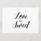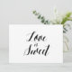 Simples e elegante estilo caligrafia preto e branco "Amor é Doce". Esta placa de casamento "Love is Sweet" parece excelente impressa em um papel mate, se você precisar de algo mais tradicional, use o Laid, Linen ou Columned, para um sentimento rústico usar o Artisan Kraft, se você quiser adicionar um toque de vidro, use o Luxe. Este é um sinal de cartão impresso plano de 5" x 7", que ficará muito elegante em uma imagem.