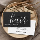 Simples modelo de cartão de negócios totalmente personalizável com texto legal em negrito, ícone de pino de cabelo na parte traseira. Design elegante, perfeito para cabeleireiro, cabeleireiro, cabeleireiro.
