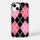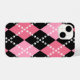 Este motivo de padrão argyle tem diamantes rosa, e as linhas pontilhadas são na verdade pequenos crânios.