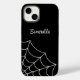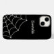 Esta capa de telefone de estilo gótico tem um gráfico teia-aranha em branco de névoa ou de casca-de-ovo contra fundo preto e está pronta para ser personalizada com um nome ou outro texto em um script correspondente ou escrevendo cursivo.