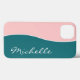 Capinha de smartphone com monograma moderno e design elegante em pêssego, azul turquesa e branco que é ao mesmo tempo fashion e sofisticado e permite que você carregue seu celular com um estilo tão único quanto você.