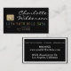 Este cartão de visita de na moda apresenta um tema inspirado no cartão de crédito. Ele tem um fundo preto com um design de gradiente do arco-íris para os números e um texto personalizado e elegante para o seu nome. Um design de brilho dourado é apresentado no leitor de chip EMV. A parte traseira do cartão de visita apresenta um plano de fundo preto correspondente com texto branco contendo as informações e o local da empresa ou da empresa.
