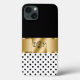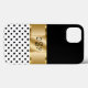 Maleta elegante de smartphone em um design elegante e na moda, incluindo elementos simulados de design dourado impressos digitalmente no cobrir, bolinhas em preto-e-branco e siglas de nome de monograma que você pode personalizar e criar suas próprias iniciais. Projetado para senhoras ou meninas que gostam de carregar seu celular em estilo.