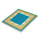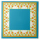 Um Azulejo cerâmico bonito, com uma borda de Potes Marigold, flores em fundo branco, com centro Sky Blue e borda. Parte da coleção Posh & Painterly 'Marigold Medley'. Adicione um trivet de madeira para usar como trivet.