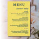 Estilo minimalista | Lemon Chiffon Fundo e Cinzas Escuras da Esteira da Máquina de Escritura Font Men | Caligrafia Simples | Rustic Wedding Menus | Menu Mesa de Casamento