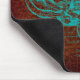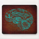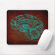 Um mousepad antigo da arte que caracteriza um diagrama temático do cérebro da anatomia antiquado em uma cor retro da cerceta com um fundo marrom do estilo do mapa.