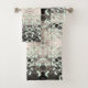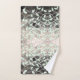 Toalha de na moda com folhas em verde, acentuadas com cinzas, pretas, brancas.