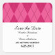 Argyle clássico e elegante Salve os adesivos de Data com um simples fundo de estilo de losango rosa. Fácil de personalizar com seus detalhes de casamento. Para obter mais opções de personalização, clique no botão Personalizar Ti.