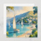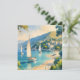 Anúncios de Viagem francês e europeu - Praia, aldeia, pessoas, árvores, mar azul e ilustração do céu