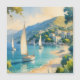 Anúncios de Viagem francês e europeu - Praia, aldeia, pessoas, árvores, mar azul e ilustração do céu