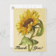 Este design floral apresenta um estilo vintage que retrata uma planta de girassol. A parte de trás apresenta uma mensagem personalizada de obrigado. Um postal como este pode ser enviado para mostrar obrigados a alguém que tenha participado de um evento, dado um presente, oferecido apoio ou feito outra ação especial.