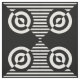 Padrão de tecido preto e branco preto-e-branco-design e círculo. Ideal para projetos de costura de estimulação visual de bebês. Desenhada por Sarah Trett.