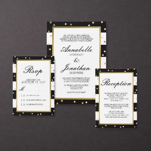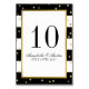 Esta elegante e moderna coleção de casamento apresenta um fundo arrojado, preto e branco, listrado com pontos dourados espalhados ao longo da fronteira. Personalize a cor de fundo para corresponder ao seu tema de casamento ou evento. Visite nossa Coleção de Casamentos de 'Stripes de Espessura' para exibir todos os produtos correspondentes.Personalize cada número que você precisará para o seu evento.