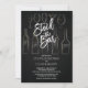 Na moda do chá de panela com garrafas e óculos de bar desenhados à mão, colocados sobre um fundo preto em tabuleiro com uma letra moderna, escrita à mão.