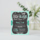 Estoque o Chá de panela do Bar com uma fonte de aparência de chalkboard fofa no padrão de listras azuis aqua turquesa. Vintage sente fontes de giz no fundo legal da lousa com vidro martini e estrelas de giz. Convide os hóspedes para estocar o bar da noiva com vinho, álcool, etc.