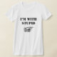 Engraçado camiseta com dizer: "Estou com estupidez" e mão apontando.