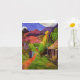 Estrada de Paul Gauguin no cartão de nota de Tahiti. Pintura a óleo em canvas desde 1891. Gauguin é um artista ilustre para suas pinturas de Tahiti. A estrada em Tahiti é exemplo fino da visão vibrante do artista da ilha tropical. Duas mulheres andam abaixo de uma estrada de terra vermelha enquanto um cavalo pasta na grama verde perto de uma cerca. Uma jovem mulher senta-se com os pés cruzados com seu queixo em sua palma no patamar de uma cabana do thatch com palmeiras e as montanhas roxas e vermelhas no fundo. Um grande presente para fãs de Gauguin, de Cloisonnism, de apos impressionismo, e de pinturas tropicais.