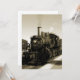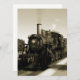 Uma fotografia sépia de uma locomotiva a vapor histórica enquanto ela sai do passado; um belo presente para qualquer aficionado do trem.