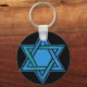 Um chaveiro com uma Estrela de David em azul e verde sobre fundo preto, de um design pintado à mão por Judy Adamson.