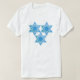Camisa branca para um homem com três estrelas de David em azul, verde e branco.