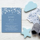 Fundo azul empoeirado, decorado com estrelas brancas. Personalize e adicione um nome e detalhes da parte. Fundo azul empoeirado, estrelas