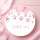 Estrelas cor-de-rosa obrigado seu adesivo divertido. Estrelas penduradas de nuvens sonhadoras e rosas claro.