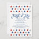 Celebrar o dia 4 de julho com um convite de festas das Estrelas Espumantes. A quarta parte de julho convida a apresentar estrelas e listras brilhantes vermelhas, prateadas e azuis, fontes de script de tendência e marcadores para suas informações personalizadas sobre o partido.