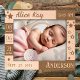 Informações personalizadas sobre nascimento de bebês, estatísticas, estrela fofa, estrutura de madeira gravada.