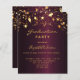 Um cartão de convite glamouroso para uma festa de formatura para ele e para ela. Um fundo arrojado decorado com estrelas douradas falsas. Personalize e adicione um nome e detalhes da parte. O texto Graduação e o nome são escritos com um script de estilo moderno, escrito à mão. Texto colorido do ouro.