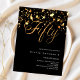 Um convite moderno e na moda para uma 50ª festa de aniversário para ele e para ela. Decorado com estrelas ouros. Fundo preto e a palavra Cinquenta escrita com letras douradas falsas grandes. Personalize e adicione um nome e detalhes da parte. 1 folha = 1 convite impresso de borda a borda.