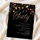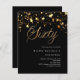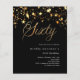 Um convite moderno e na moda para uma 60ª festa de aniversário. Fundo preto e a palavra Sessenta escrita com letras de ouro falsas. Decolado com estrelas ouros. Personalize e adicione um nome e detalhes da parte. 1 folha = 1 convite impresso de borda a borda.