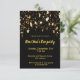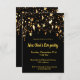 Um convite de festas clássico perfeito para uma festa de Ano Novo com amigos, familiares ou colegas de trabalho. Fundo preto e uma cascata de estrelas ouros. Modelos para dados de data, local, RSVP. Clique em "personalizá-lo" se quiser que o texto apareça no verso.