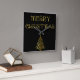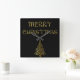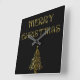 O fundo preto e o Ouro brilhante estrelam a árvore de Natal com a Dourada tipografia Feliz Natal. Relógio de Parede Elegante