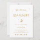 Este elegante Convite Celestial Boho foi projetado em estilo minimalista, com crista lua impressa em ouro, fases luas e elementos estelares simples. Se você é uma deusa natural com poderes psíquicos mas não deseja atenção, esta design é para você.