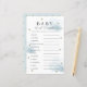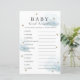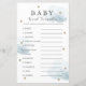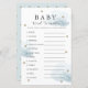 Este cartão de chá de fraldas de "baby word scramble" bonito apresenta um fundo branco com estrelas douradas falsas e nuvens azul-fluffy. O verso apresenta um fundo azul bebê com padrões falsos de estrelas douradas. Respostas : 1. FRALDA 2. EMBALAGEM 3. ROLADOR 4. ANIMAL ALIMENTADO 5. ROUPA 6. TEDDY BEAR 7. RÁCIO 8. ENFERMEIRO 9. FRASCO 10. FÓRMULA 11 LEITE 12. Você pode encontrar produtos correspondentes na minha loja.
