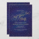 Efeito brilhante da brilha do ouro estrelas de bolinhas brilham em nuvens de confete contra um fundo azul e violeta do céu com aquarela no Convite de festas de Ano Novo, com um script de efeito de brilho dourado, "Partido da Véspera de Ano Novo". Perfeito para um rico de chic noturno! Arte original de Colleen Michele. Por favor, note-se que não existe um verdadeiro efeito de brilho de ouro ou de folha de ouro nas estrelas e no guião; não será utilizada qualquer brilho, folha de ouro ou tinta metálica neste convite.