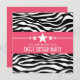 Trendy and moderno Stars Zebra Print Sweet Six Invitation com fundo de impressão em preto-e-zebra branco e uma borda magenta ousada adornada com um divertido motivo de estrela. Este convite feminino é uma escolha de quadril e na moda para uma divertida festa 16. Fácil de personalizar, basta adicionar detalhes da parte nos campos de texto fornecidos. Clique em "Personalizar" para encontrar mais opções de personalização.