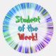 Este design de adereço divertido mostra a mensagem "Estudante da Semana!". Um autocolante como este poderia talvez ser utilizado para incentivar positivamente um estudante. [~Z0000317]