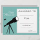 Um prêmio acadêmico de nível escolar prêmio de um telescópio com uma imagem temática de ciência em perfeita perfeição para estimular um jovem estudante de ciência ou astronomia. Você pode escrever em seus próprios detalhes. Um recurso de excelente para qualquer tipo de professor de sala de aula.