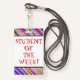 Esta excitação, características de design positivas do crachá a mensagem "ESTUDANTE DA SEMANA!". Um crachá como este pôde ser usado para ajudar a incentivar um estudante. [~Z0000317]