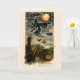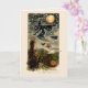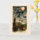 Um céu escuro enchido com as estrelas e uma grande, lua cheia está estudando uma formação de estrela interessante de uma bruxa em uma vassoura. É uma noite perfeita do Dia das Bruxas. O texto é original ao impressão e lê, "estuda as estrelas na noite de Hallowe'en."
