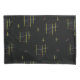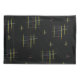 Gritos e linhas amarelos, burrentas e brancas em um padrão repetido em um fundo preto sugere uma sensação de movimento e energia.