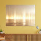 There is no sunrise. No sunset. No direction of time. Only a luminous horizon held in stillness — vertical columns of gold rising gently from a quiet reflective surface.
