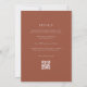 Este convite de casamento completo inclui o convite formal na frente e todos os detalhes adicionais para reservas e rsvp na parte traseira. As cores clássicas do creme e do terracota são um eterno extra para qualquer casamento. Para facilitar, ele inclui seu código qr personalizado para que seus convidados possam digitalizar.