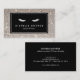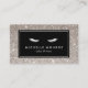 Uma imagem brilhante prateada preenche o fundo deste cartão de visita de beleza. Um par de pestanas brancas é a marca perfeita para extensões de pestanas, maquiadores, empresas cosméticas, bares de lash e muito mais. Copyright © 1201AM CREATIVE
